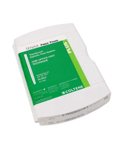 El envase de Tenax Fiber Trans Intro Kit de Coltène contiene 15 pernos en diferentes tamaños + brocas.