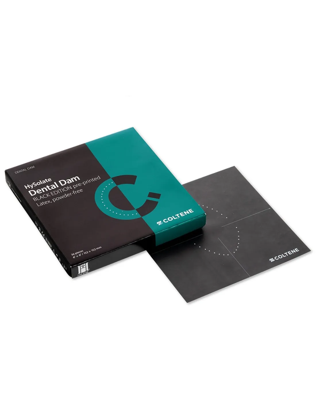 El dique de goma HySolate Latex Dental Damm Black Edition de Coltène, Hygenic está fabricado en puro látex 100% natural, sin polvo.