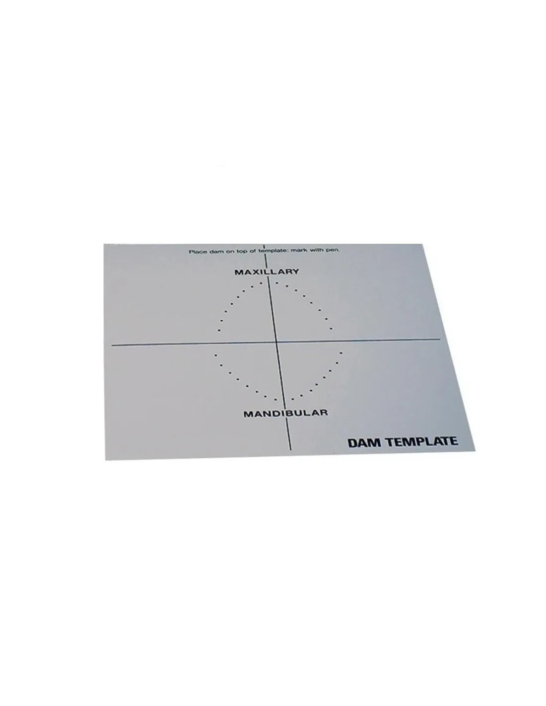 La plantilla impresa para dique dental es una ayuda muy práctica para marcar con precisión la posición de los orificios en el dique dental antes de perforarlos.