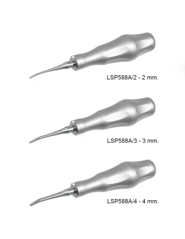 El luxador curvo Carl Martin con bordes cortantes y de forma plana está indicado para separar la encía del diente antes de la extracción del mismo.