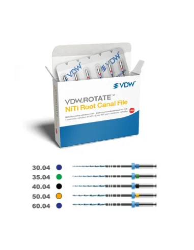 El sistema VDW Rotate de Zipperer cuenta con limas NiTi que permiten instrumentar, de forma sencilla y segura, todo tipo de conductos radiculares mediante una secuencia de limas con conicidad progresiva.