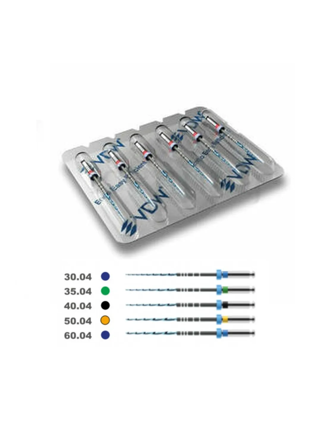 El envase de limas rotatorias VDW.Rotate 31mm .04 para modelado de anatomías de canales grandes contiene 1 blister de 6 unidades, a elegir.