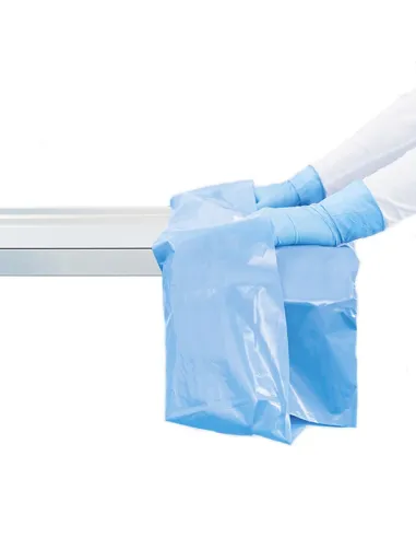 Se trata de una talla en funda fabricada en LDPE + TNT absorbente parte central, indicada para cubrir la mesa quirúrgica tipo Mayo.