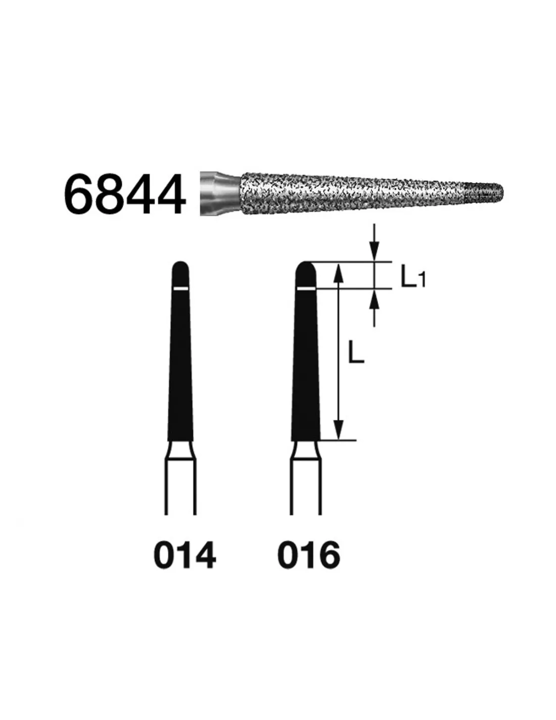 Fresa Komet diamantada 6844-314 para clínica está fabricada en acero inoxidable con parte activa revestida de diamante.