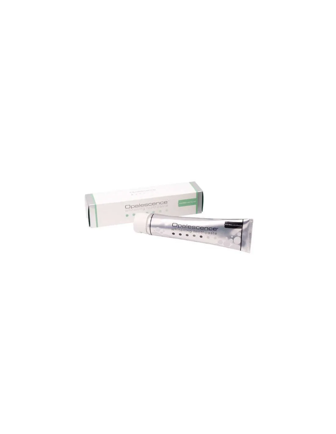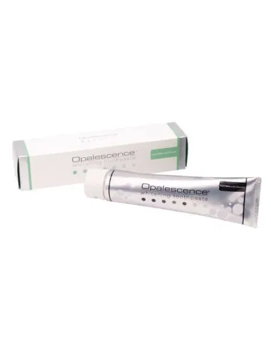 La pasta de dientes blanqueadora Opalescence contiene 0,25% de fluoruro de sodio (que corresponde a aprox. 1100 ppm de iones de flúor) para un blanqueamiento progresivo, especialmente indicado para el mantenimiento de un blanqueamiento en clínica.
