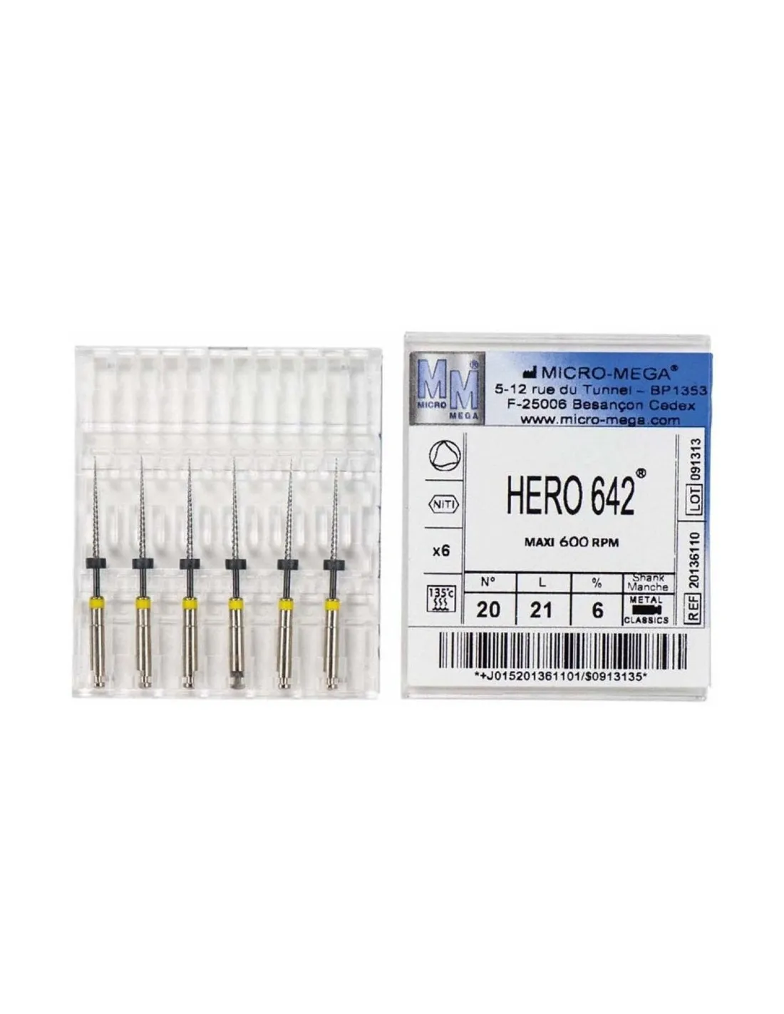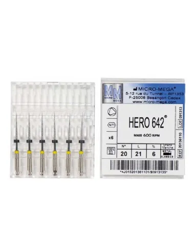 La caja de Limas rotatorias Hero 642 MicroMega 06 L21 mm contiene: 6 unidades.