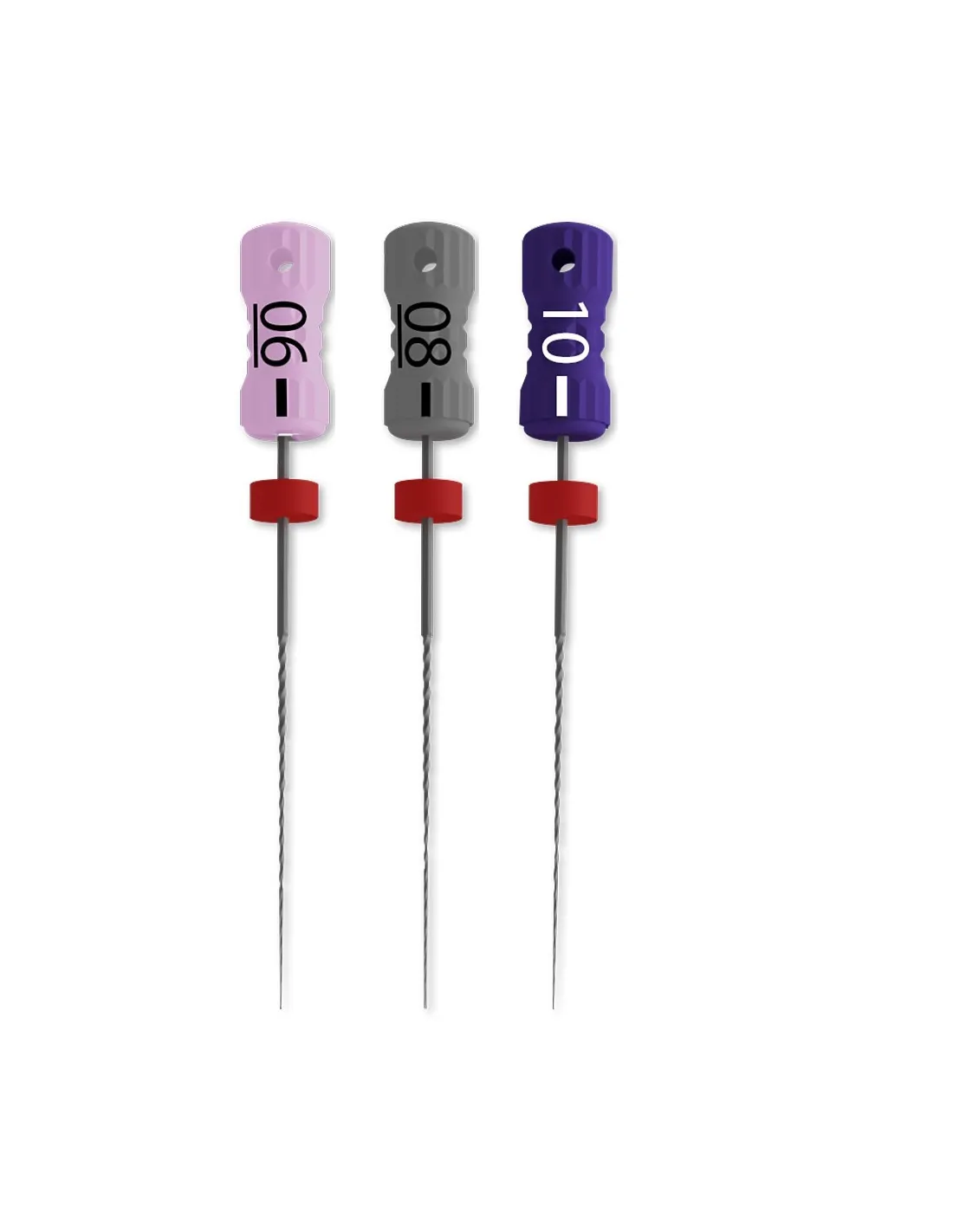 Lima manual de 31 mm de longitud, punta cónica 0,02mm y tope de silicona incorporado.