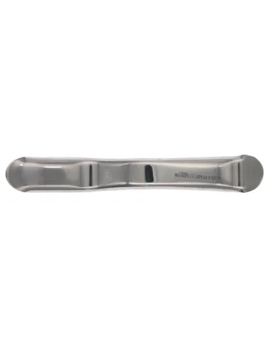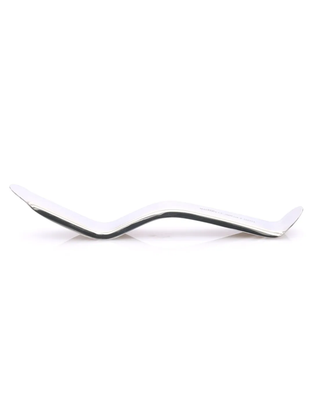 El Separador Minnesota es un instrumento de metal que se adapta al borde labial y permite realizar la función de separador para una visión completa del arco dental. La parte ancha separa la lengua y protege de las fresas. La parte fina separa el labio y la mejilla.