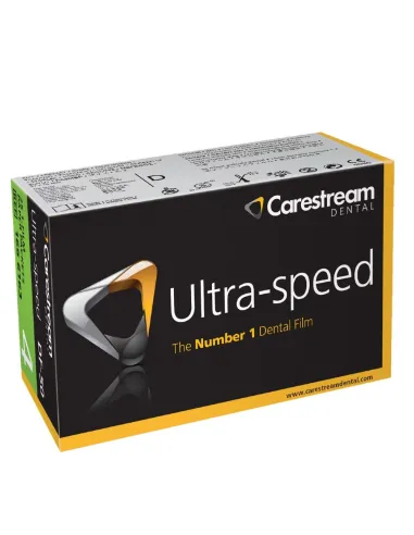 Ultra-Speed DF50 Oclusal de Kodak Carestream es una película intraoral para radiográfica dental de alto contraste (velocidad D).