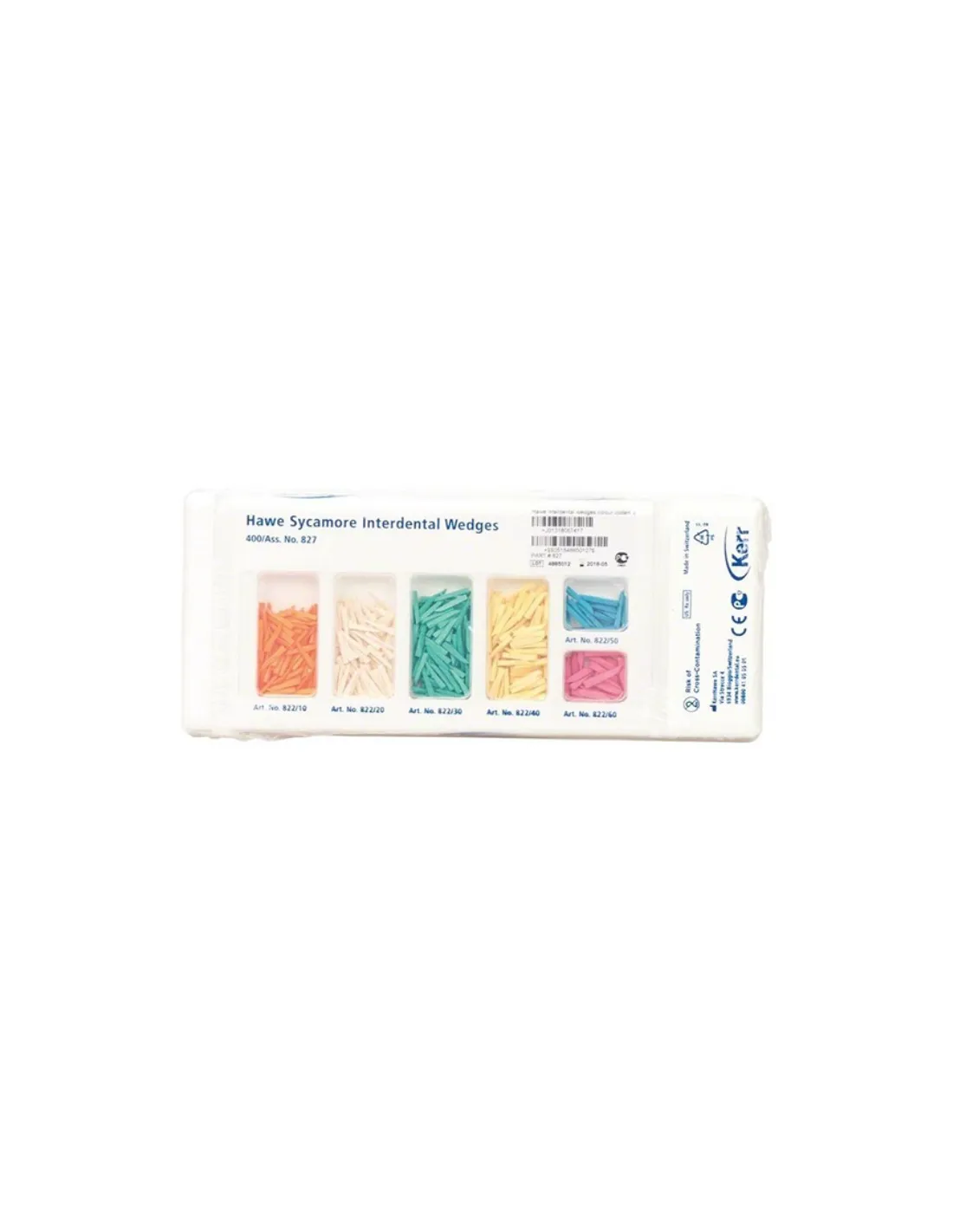 Las cuñas interdentales Hawe de Kerr están fabricadas con madera de arce sicómoro inastillable, garantizando estabilidad y una cierta compresión.