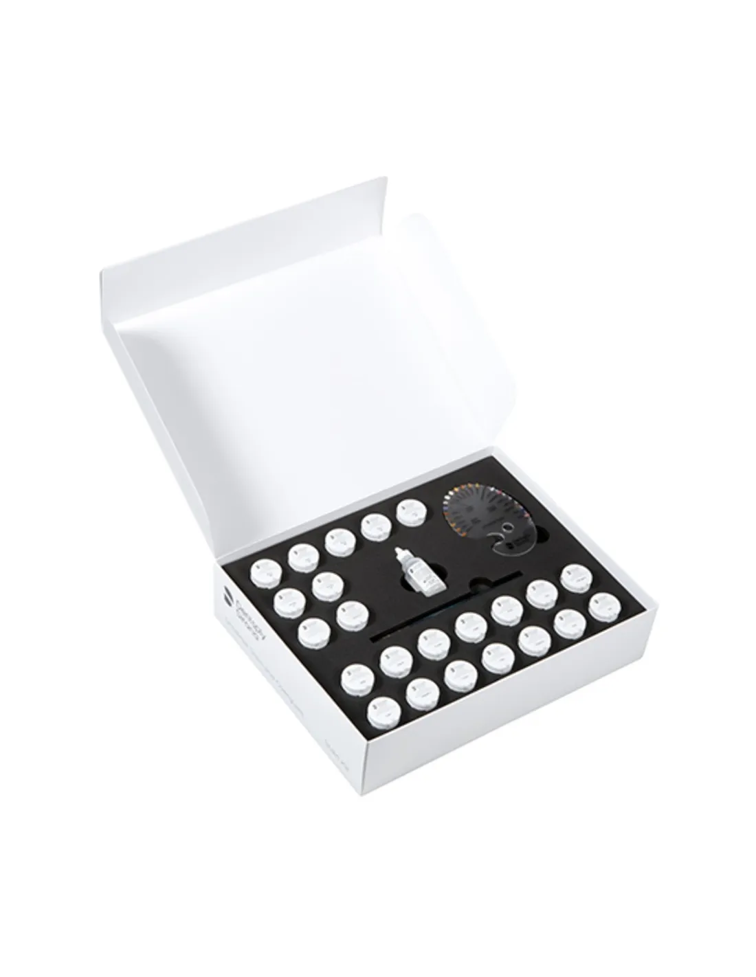 El kit incluye: 5 Body maquillajes + 2 maquillajes Incisales + 14 maquillajes de color + 2 masas de glaseado + accesorios.