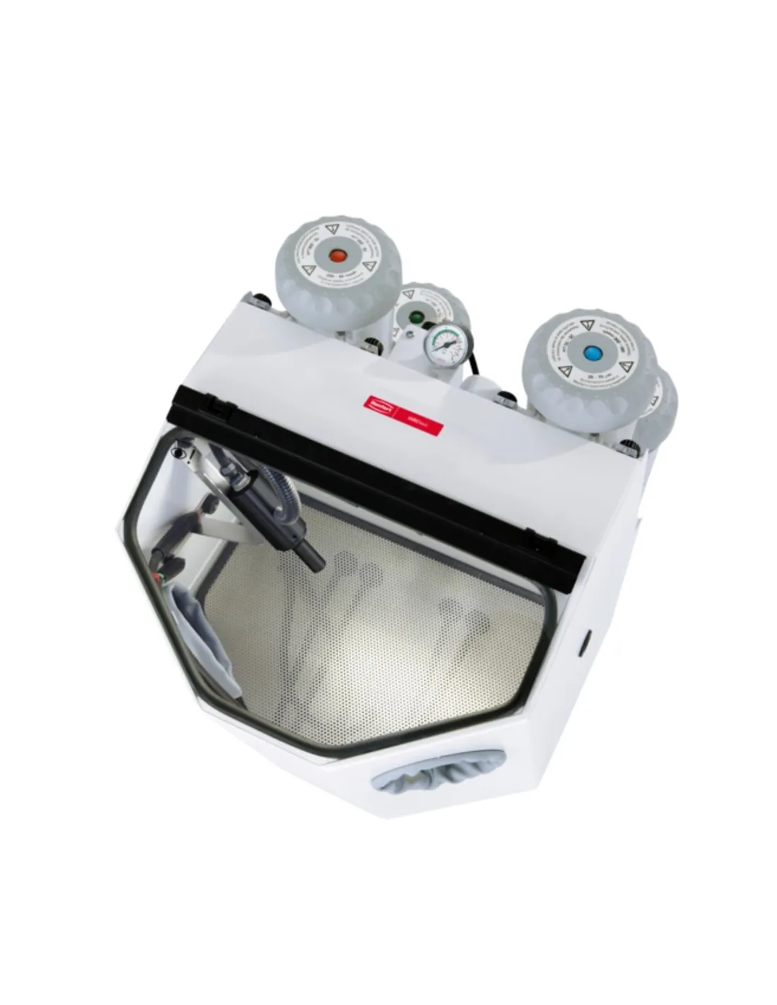 - Dimensiones (An x Al x Pr): 380 x 540 x 450 mm [14,92 x 21,28 x 17,73 inch] (en caso de conexión de 2 depósitos para el chorreado de precisión).