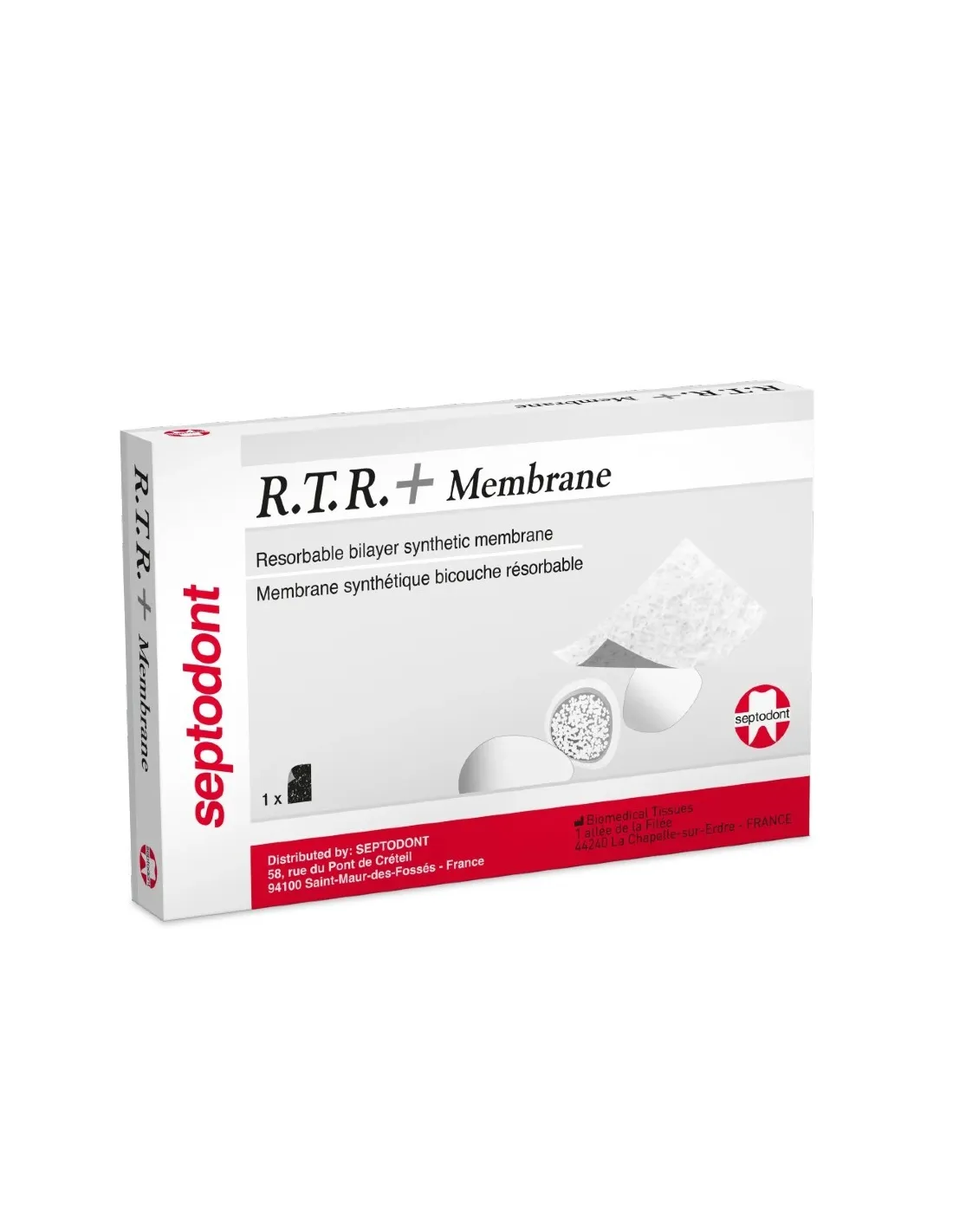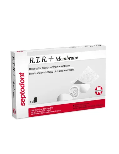La membrana sintética reabsorbible R.T.R.+ Membrane de Septodont está indicada en la cirugía bucal, periodontal y de implantología para el tratamiento de defectos óseos y la preservación ósea después de la extracción dental, en adultos, excepto mujeres embarazadas y lactantes: