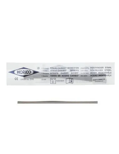 Las tiras de acero para separar de Horico 316 presentan una longitud de 120mm, ancho 6 mm y 0,2 mm de grosor.