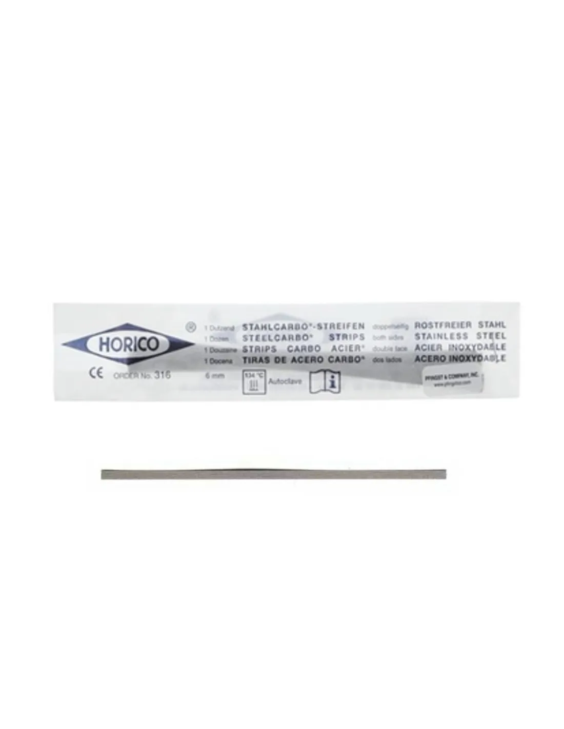 De doble cara, las tiras de separación abrasivas de Horico están fabricadas a base de corindón galvánicamente ligado sobre acero inoxidable.