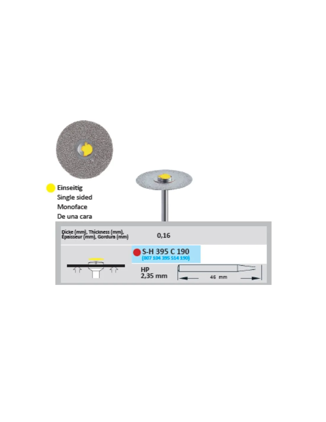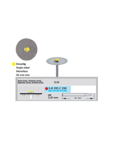 El disco de pulir Horico presenta un espesor 0,16 mm y está indicado para su uso con pieza de mano (HP) 2,35 mm. Vástago 46mm.