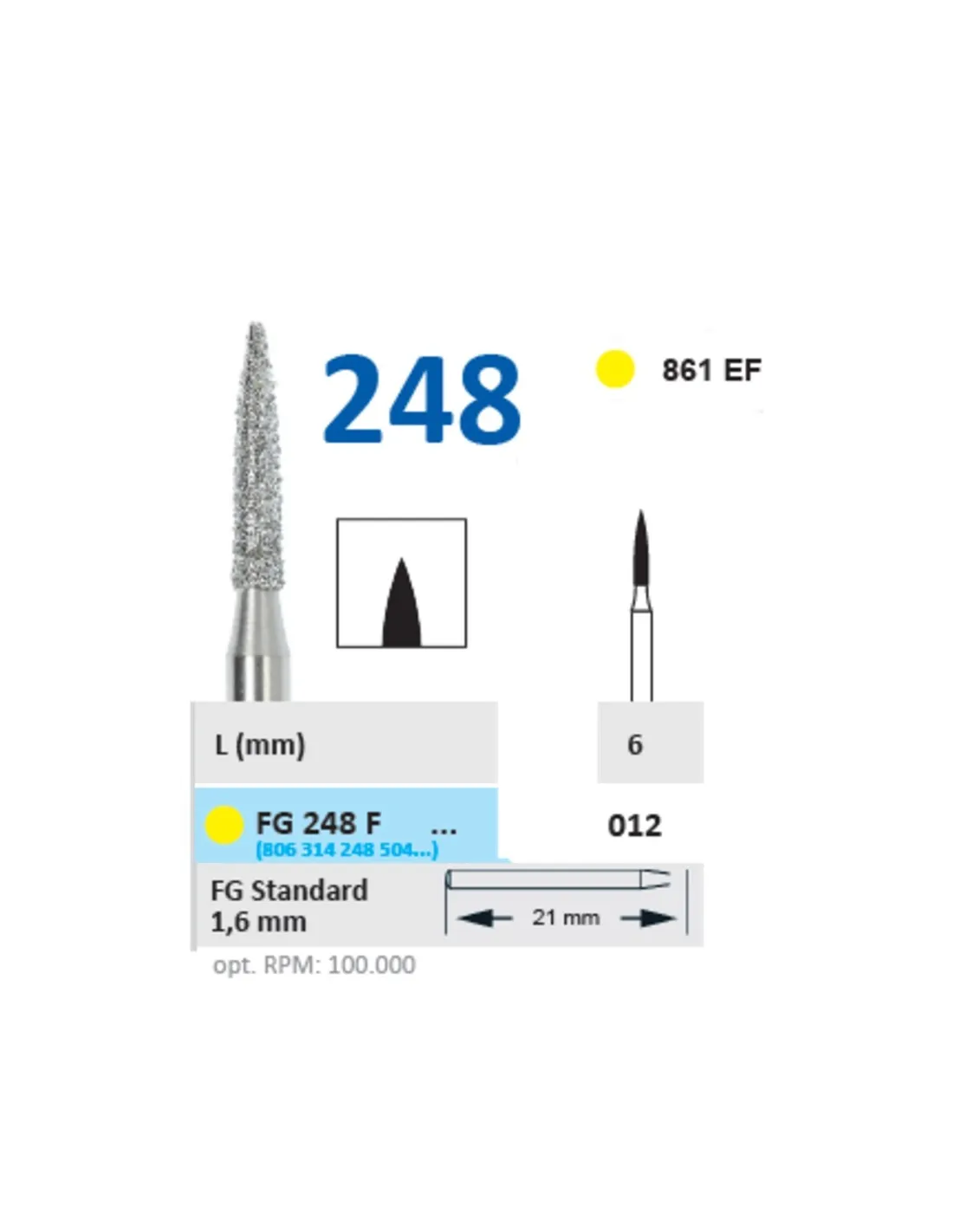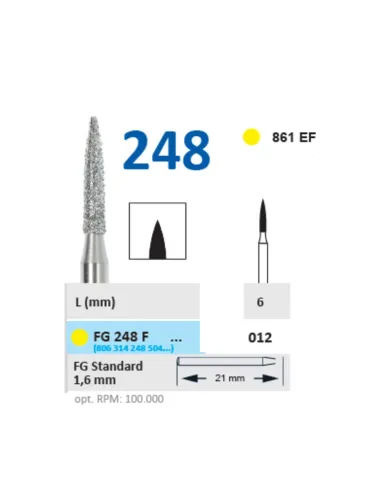 La fresa de diamante FG 248 figura 681 EF presenta una longitud de 6 mm: