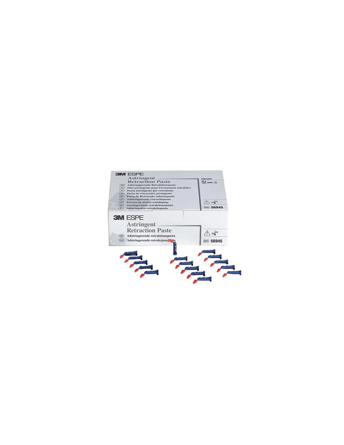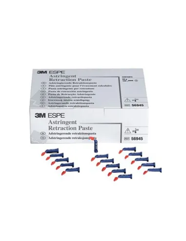 La pasta de retracción astringente ARP de 3M ESPE está indicada para la retracción temporal del margen gingival, con el fin de proporcionar un surco seco cuando el tejido periódontal está sano. Indicado para toma de de impresiones, preparación de provisionales, realización de obturaciones de clase II y IV.