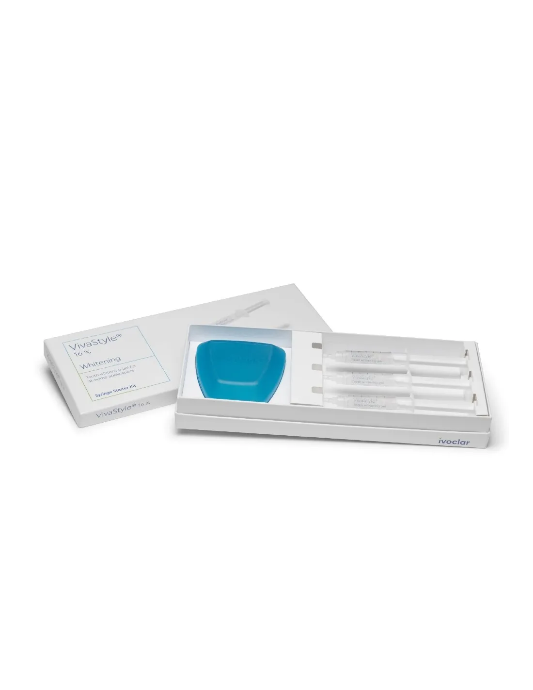 VivaStyle de Ivoclar Vivadent es un gel con un 16% de peróxido de carbamida (equivale a un 5,8% de peróxido de hidrógeno) para el blanqueamiento dental en casa.