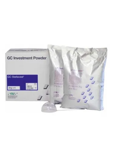 Stellavest de GC es un material en polvo para revestimientos fosfatados, sin carbono, para realizar prótesis fija.