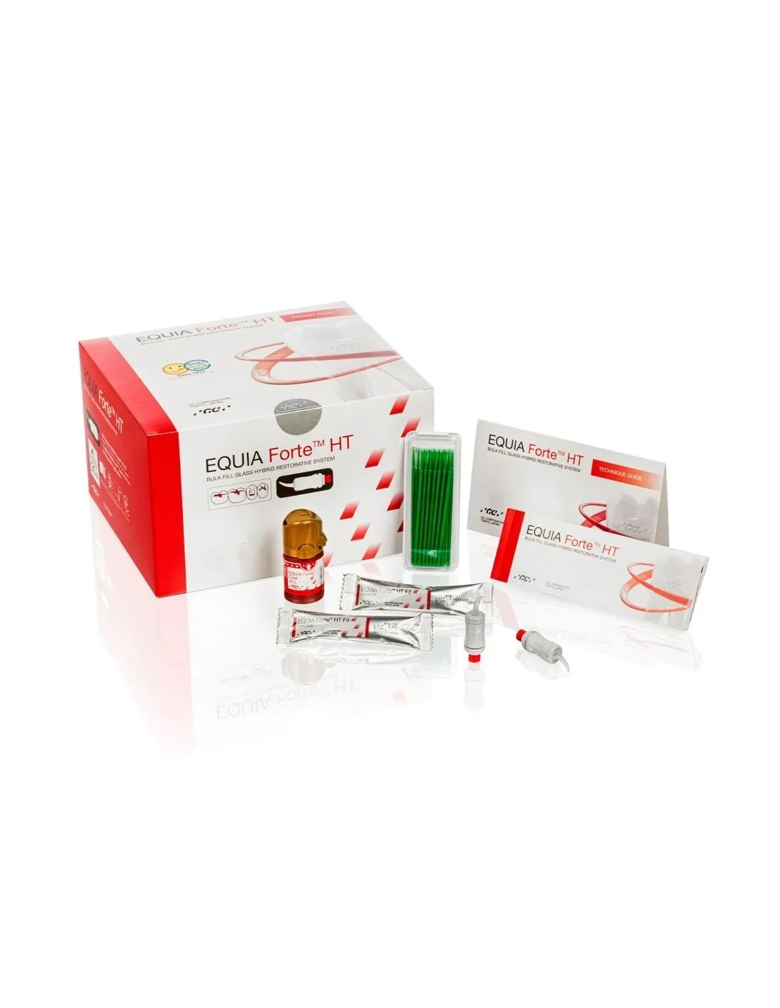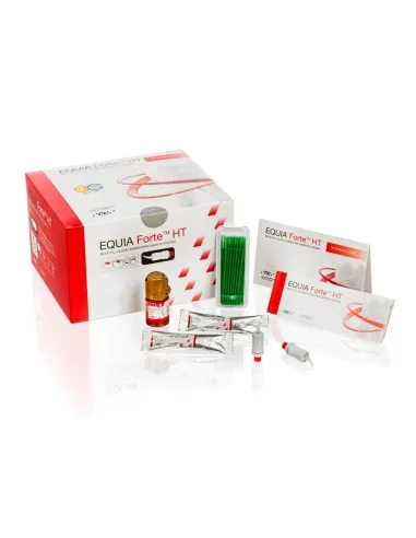 La caja de Equia Forte HT Promo Pack de GC contienen 100 unidades + 1 bote de Equia Forte Coat de 4ml.