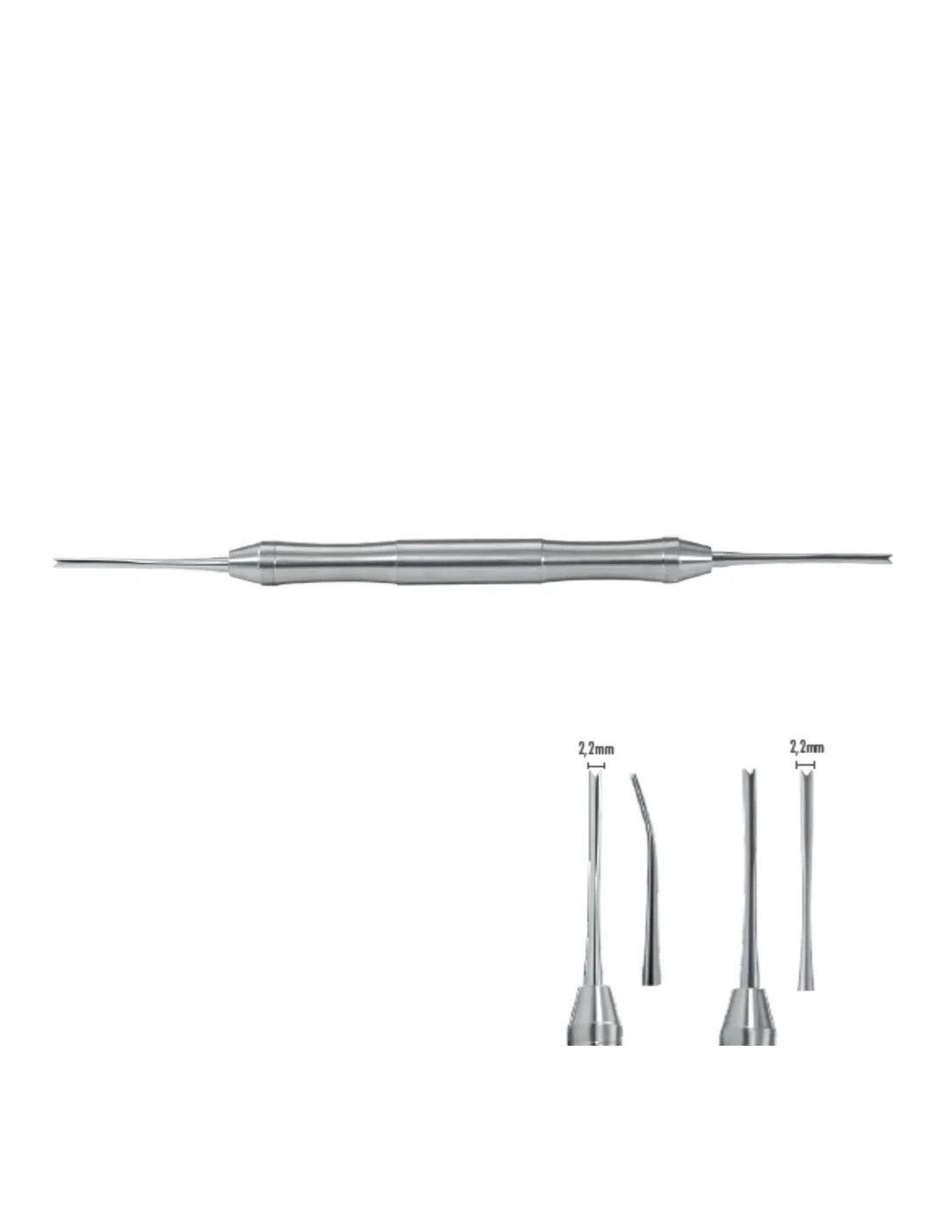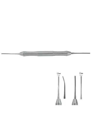 Presenta doble parte activa con forma acanalada, ambas de 2,2 mm pero una recta y otra algo curvada.