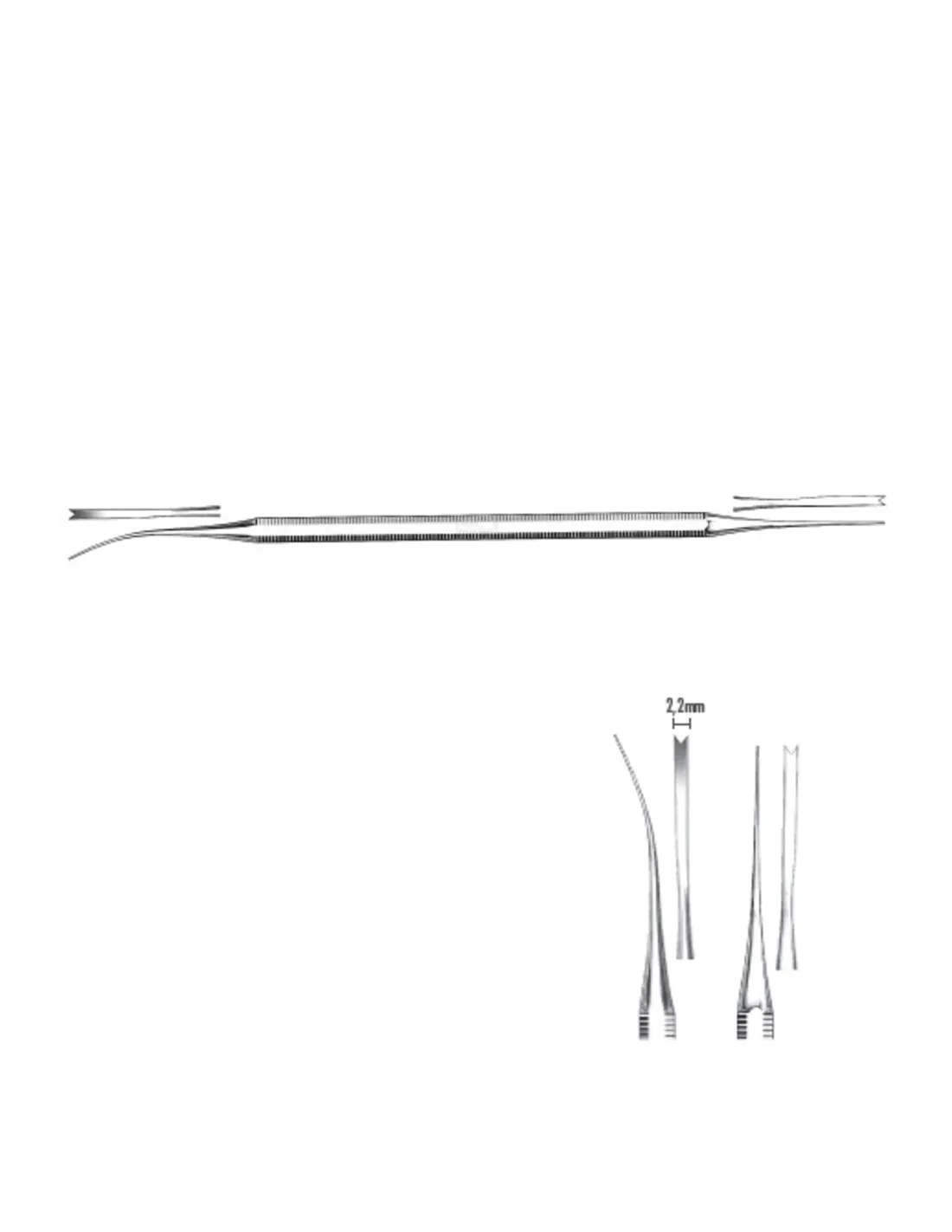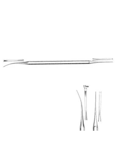 Presenta doble parte activa con forma acanalada, ambas de 2,2 mm pero una recta y otra algo curvada.