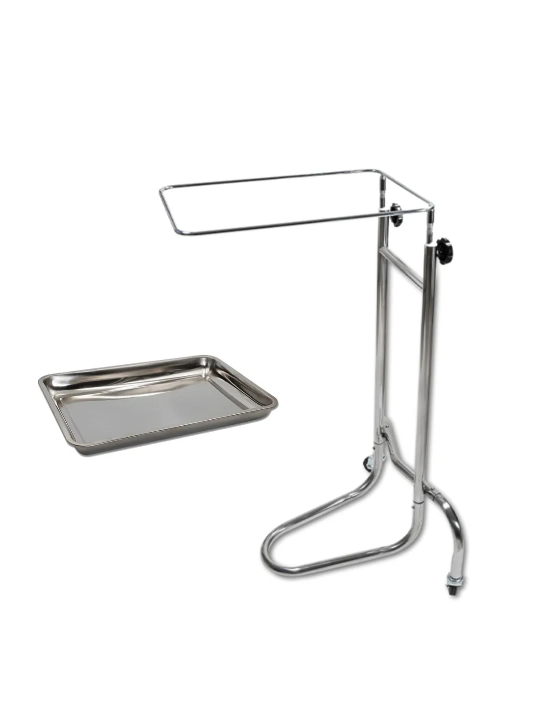 Fabricado en acero inox, cuenta con 1 bandeja extraíble, apoyo y 2 ruedas para facilitar su traslado.