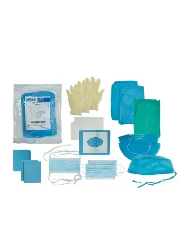 El set Implantología de Omnia es un conjunto estéril fabricado en materiales de alta calidad con vestimenta y accesorios para dentista, asistente y paciente.