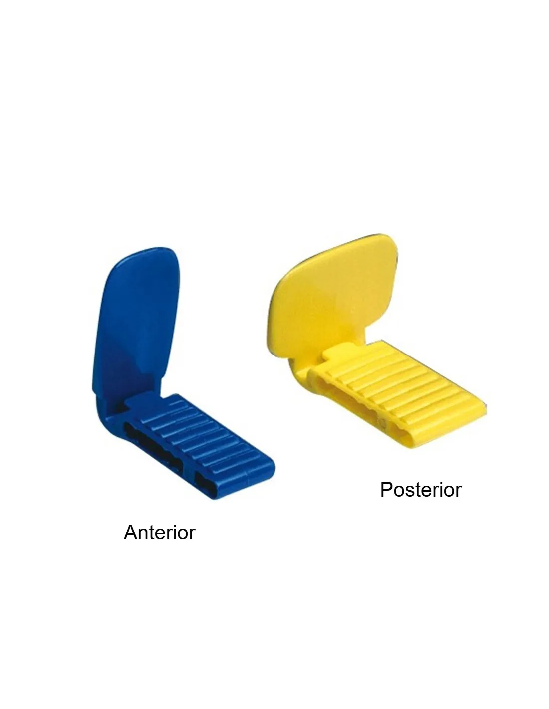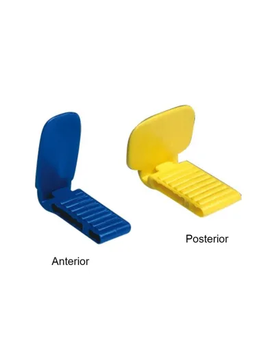 Codificados por color, están disponible para mordida posterior (amarillo) y mordida anterior (azul).