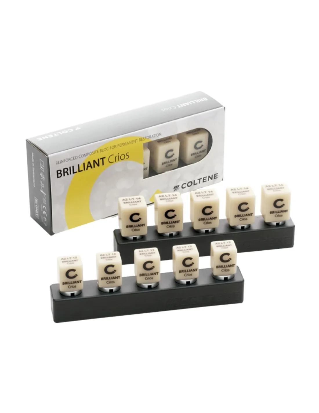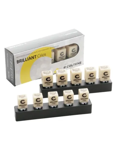 Brilliant Crios de Coltenè es un bloque de composite reforzado diseñado para restauraciones definitivas indirectas mediante el proceso de tallado CAD/CAM.