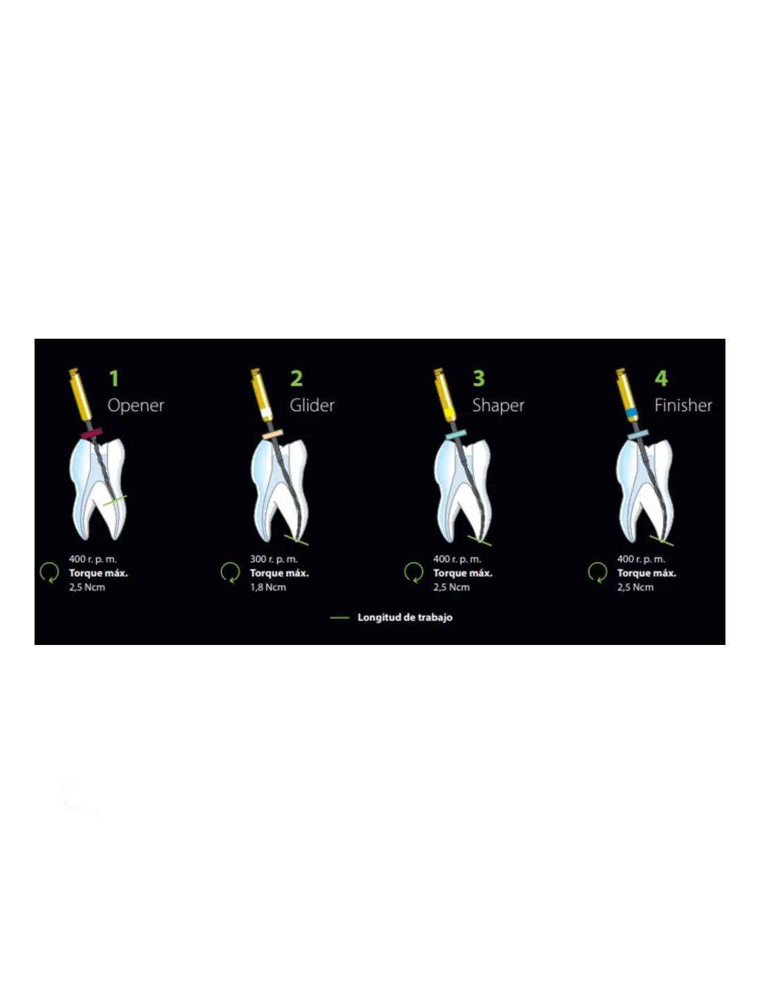 Consta de 4 limas NiTi para secuencia OGSF de 4 pasos: