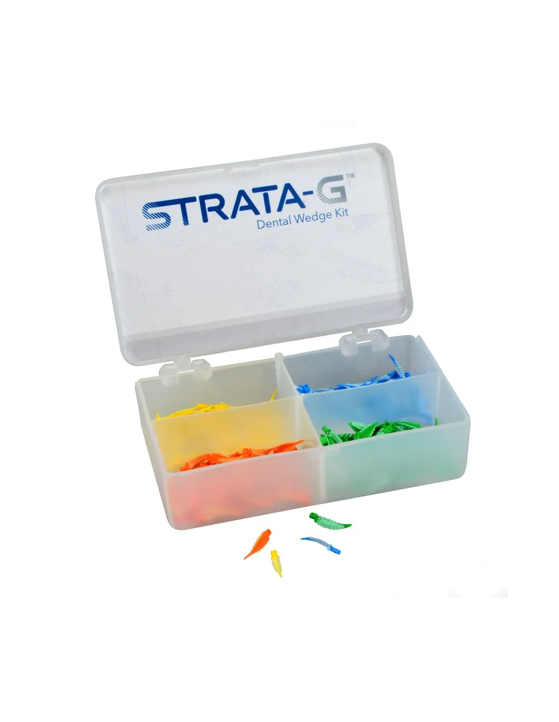 El kit surtido de Cuñas interproximales Strata-G de Garrison contiene 200 unidades (50 unidades de cada tamaño).