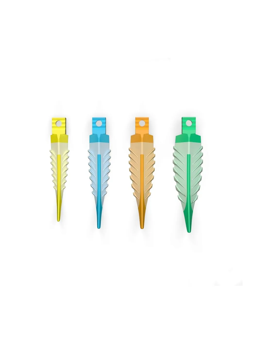 Sus suaves aletas retentivas se pliegan con suavidad hacia abajo durante la inserción de la cuña y para volver a su posición cuando se despeja el espacio interproximal, bloqueando las cuñas Strata-G™ en su posición.