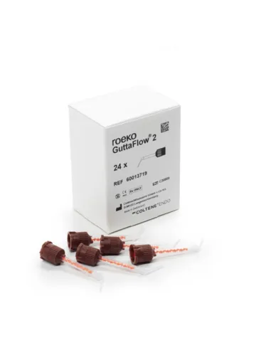 El GuttaFlow 2 de Roeko Coltène es un sistema obturación de conductos radiculares que combina: gutapercha en polvo con un tamaño de partícula de micras y un sellador, ambos de polimerización rápida cuando se combinan.