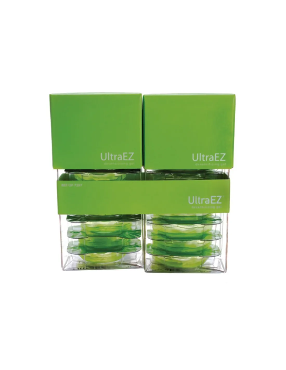 UltraEZ de Ultradent es un gel desensibilizante viscoso, adhesivo y de liberación sostenida, con nitrato de potasio al 3 % y con ion fluoruro al 0.11 % en peso por peso.