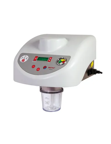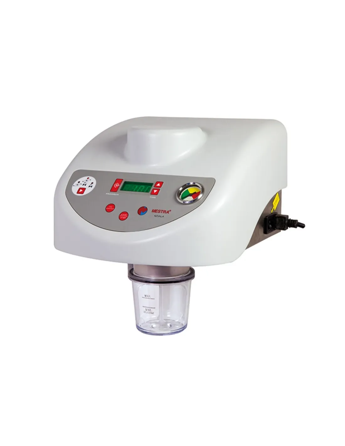La mezcladora Mestra Koala está dotada de un potente y robusto motorreductor con engranajes de nylon (menor ruido y fricción) y de una bomba de alto vacío de dos cuerpos.