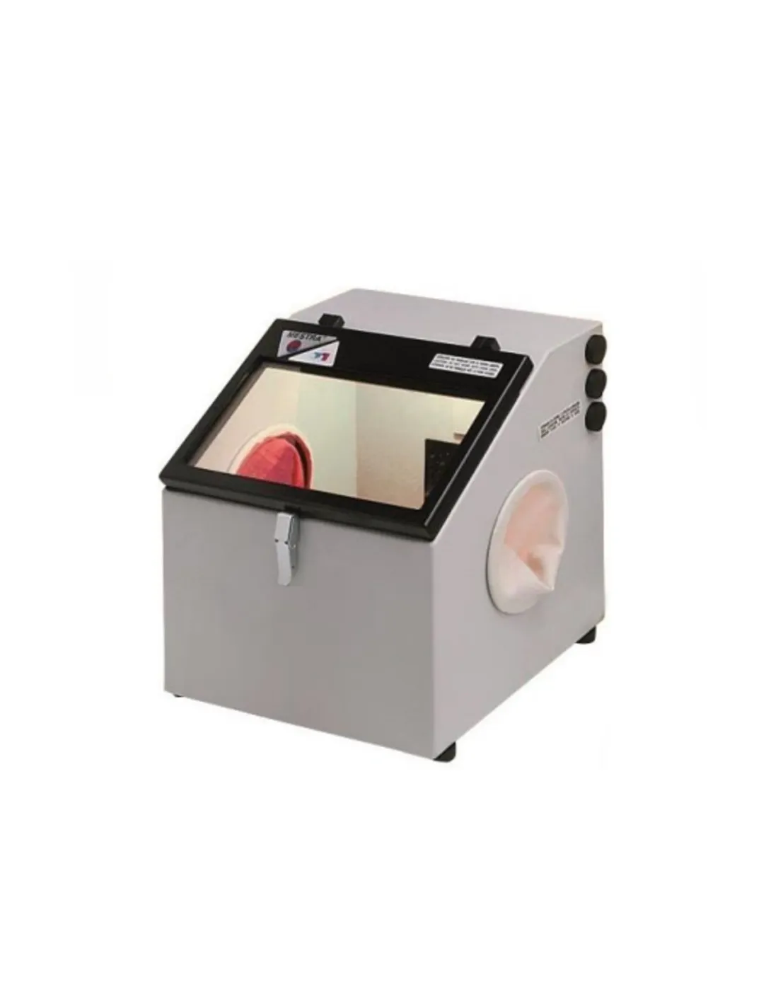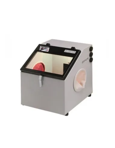 La arenadora T1 de Mestra es una cabina de chorreado en arena para especialmente diseñada para el microchorreado de pequeñas piezas de prótesis dentales.