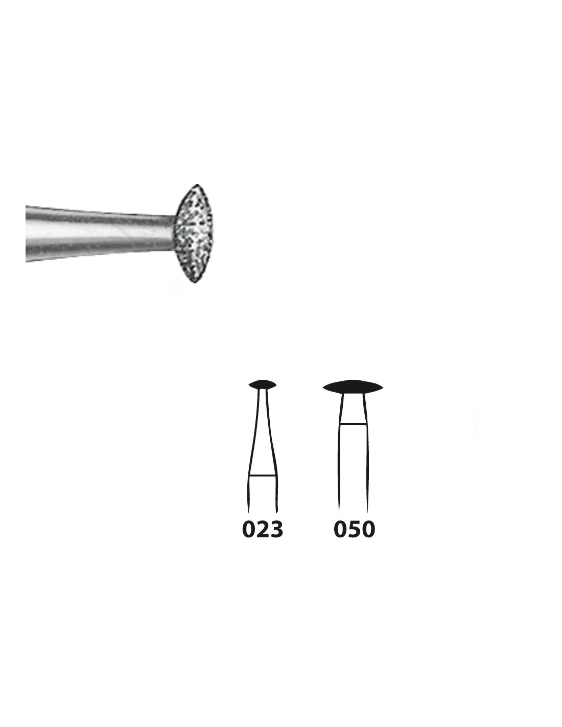 El instrumento 825.104 de Komet es una fresa diamante con forma de lenteja, indicada para la técnica de coronas y puentes.
