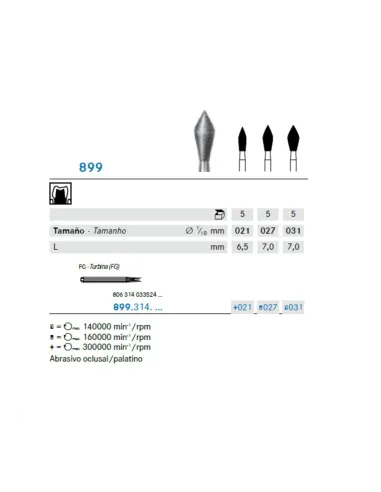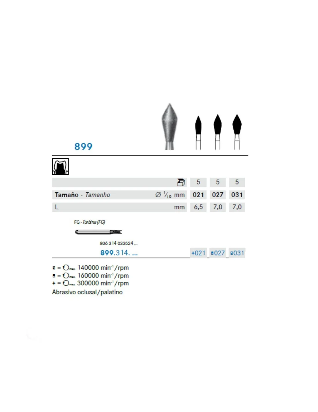 Choose model of Fresa Diamante 899.314 FG Oclusal/Palatino Barrilete Punta, Preparación, Clínica 5 uds Komet
