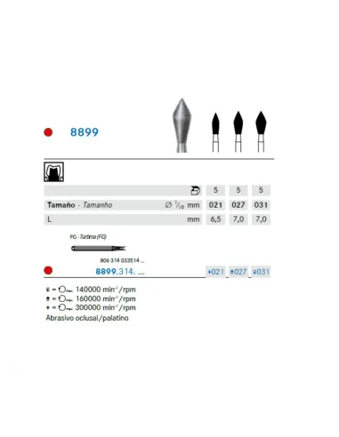 Choose model of Fresa Diamante FG 8899.314 Oclusal/Palatino, Fino, Barrilete Punta, Clínica 5 uds Komet