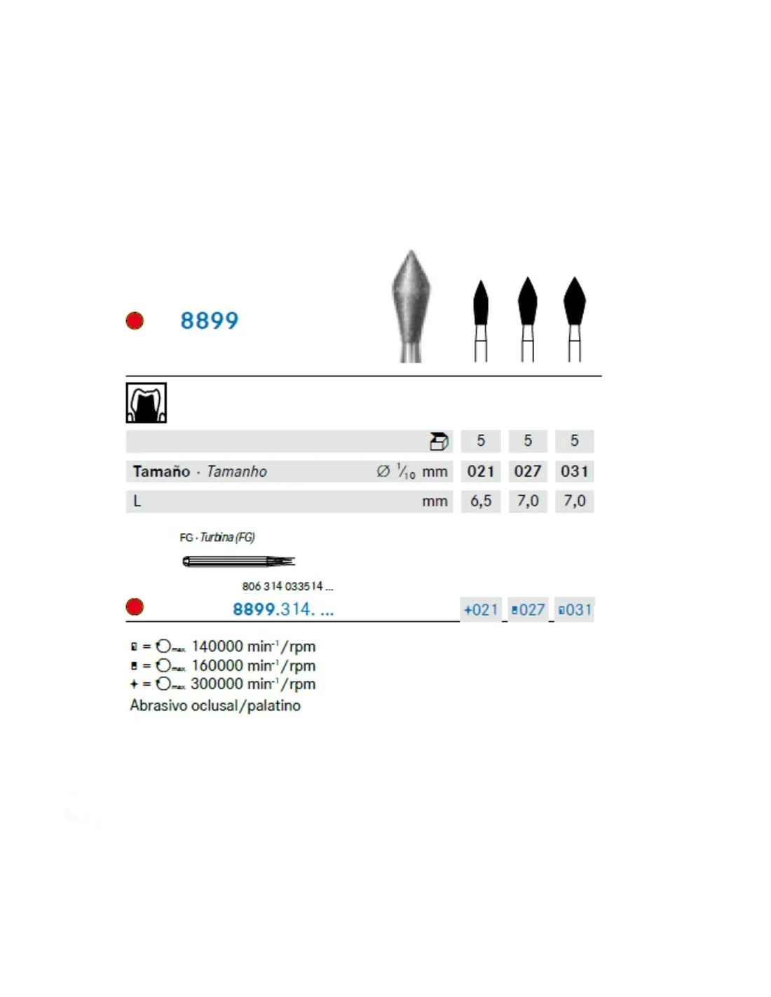 • 021 - 8899.314.021 - L 6,5mm - velocidad max. 300000 min-1/rpm