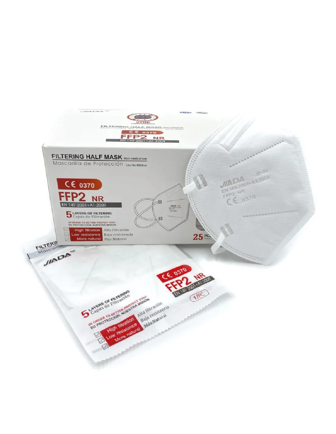 Mascarilla FFP2 no reutilizable con alta capacidad de filtración establecido por la norma EN149:2001+A1:2009.
