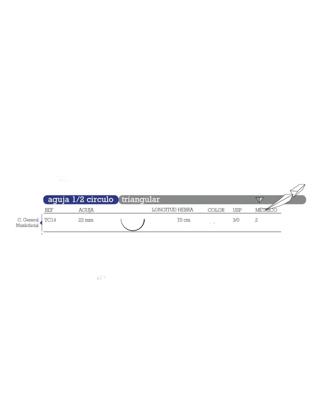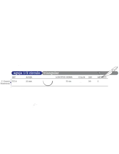 - TC-14 aguja 1/2 círculo, triangular 22 mm.