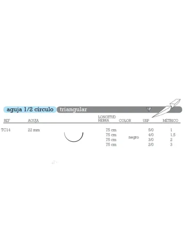 - TC-14 aguja 1/2 círculo triangular 22 mm.