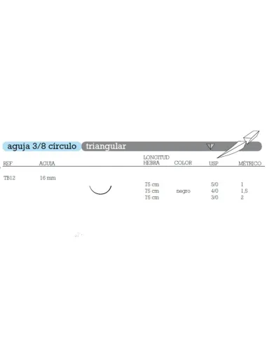 - TB12 aguja 3/8 círculo triangular 16 mm.
