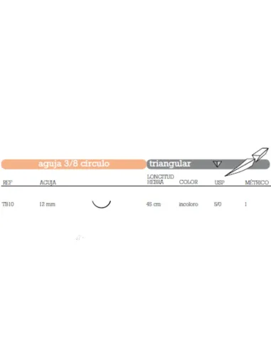 SUTURA ABSORBIBLE DE POLIGLECAPRONA TB10 AGUJA 3/8 CÍRCULO TRIANGULAR 13 MM USP 5/0 HEBRA 45 CM INCOLORA