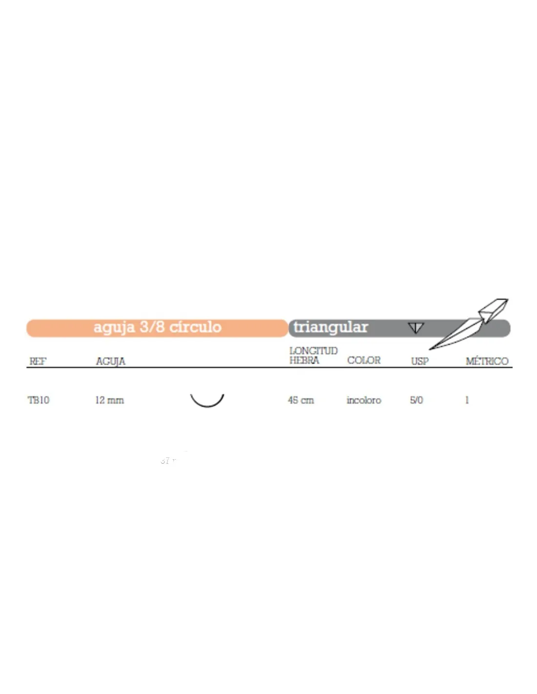- TB10 aguja 3/8 círculo, triangular 12 mm.