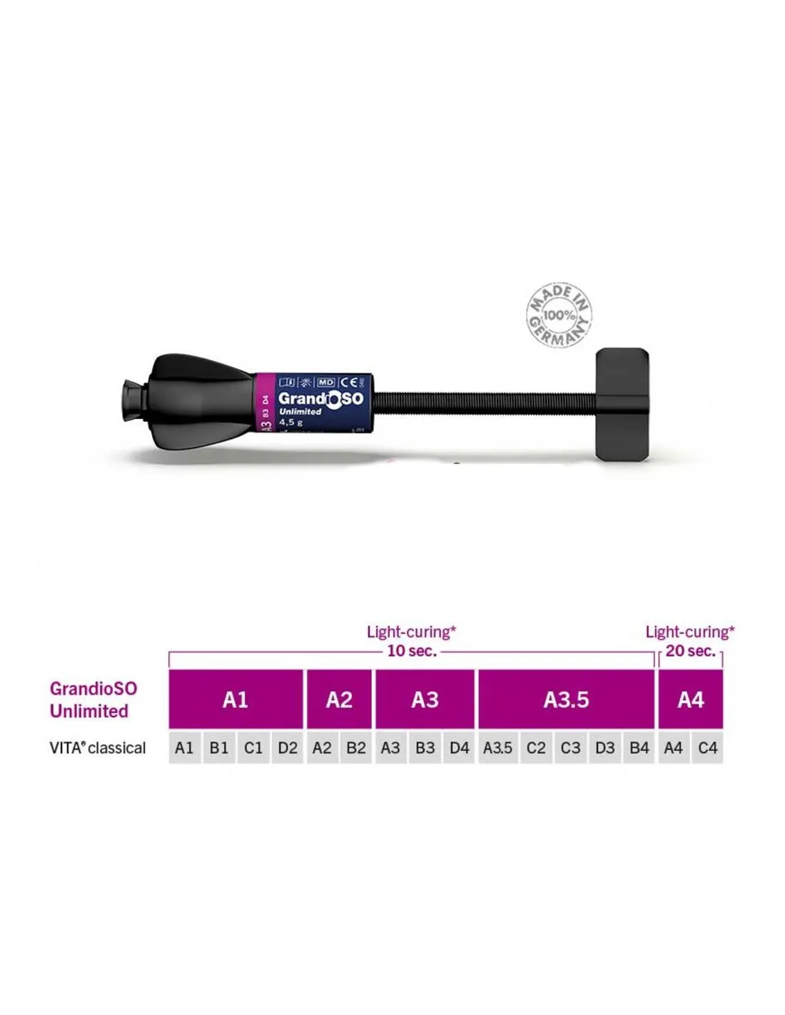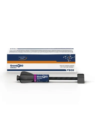 GrandioSO Unlimited de VOCO es un composite universal nano-híbrido radiopaco y fotopolimerizable que no precisa de estratificación gracias a la Tecnología de Transformación Visual (VTT) pudiéndose aplicar en capas de 4 mm cada vez.
