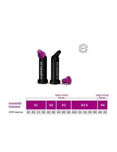 GrandioSO Unlimited de VOCO es un composite universal nano-híbrido NO necesita de estratificación gracias a la Tecnología de Transformación Visual (VTT) pudiéndose aplicar en capas de 4 mm cada vez.